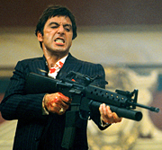 Los camorristas deben crearse una imagen criminal que a menudo no tienen, y que encuentran en el cine. Articulando la propia figura sobre una máscara hollywoodiense reconocible, toman una especie de atajo para hacerse reconocer como personajes a los que hay que temer. La inspiración cinematográfica llega a condicionar incluso opciones técnicas, como la empuñadura de la pistola y el modo de disparar.