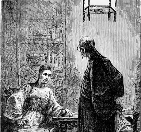 En Tribulaciones de un chino en China, el excéntrico y adinerado Kin-Fo, nacido en Beijing pero criado en Shanghai, atormentado por no encontrar la felicidad, compra un seguro a todo riesgo de su propia vida (incluido el suicidio), a cambio de un elevado capital a la siniestra Compañía de seguros sobre la vida La Centenaria. La originalidad del argumento radica en que Kin-Fo no deseaba vivir y había quedado arruinado luego de firmar el seguro. En vista de que aparentemente nada le hacía feliz, se entrega a un acto de solidaridad inmensa, dejando como herederos de la suma a su novia Le-U y a su inseparable amigo, el filósofo Wang, antiguo Tai-Ping2. Hasta aquí la trama es emocionante, a medida que avanza la novela, vemos como el plan del protagonista de provocar su propia muerte va perdiendo consistencia hasta el punto de arrepentirse de la decisión cuando el Banco Central de California le informa, de forma repentina, que no había perdido su capital, sino que este había sido duplicado. Si bien realiza todos los preparativos con esmero, sin olvidarse de comprar el gallo blanco, que para la tradición china representa la atracción de los espíritus que revolotean en torno a un muerto, Kin-Fo se da cuenta de que no le resultará tan fácil morir porque no encuentra a su mercenario, su inseparable Wang, pues huye en el último momento. Como él mismo deja escrito: “Me he dado la muerte voluntariamente, por disgusto y cansancio de la vida”.